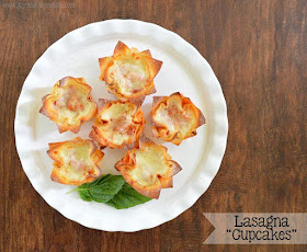 Making lasagna in cupcake form solves the issue of everyone fighting over those coveted corner pieces of a traditional pan-baked lasagna. Everyone gets crispy edges here, folks. (The edges will crisp while the bottom part softens and takes on the texture of regular cooked lasagna noodles.) And, another "plus" - these are just so darn cute. These allow me to get my kids busy in the kitchen ... the layering is just so much fun! Also, using square wonton wrappers means no boiling noodles and is a total timesaver.
